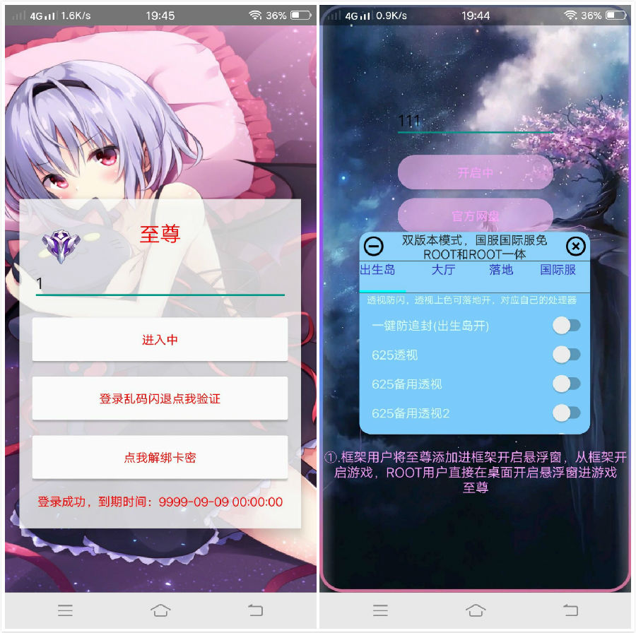 破解版随便输入卡密登陆即可,支持ROOT免ROOT使用,自备框架插件!