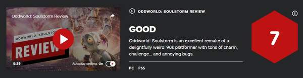 动作冒险游戏《奇异天下:灵魂风暴(Oddworld: Soulstorm)》在上周正式发售,老同伙“阿比”将在一无所有的逆境中,为了自由拼尽全力去找寻出路。日前外媒IGN宣布了对本作的评测,并给出了7分的评价。评测者以为,游戏很好的还原了90年月平台游戏的感受。