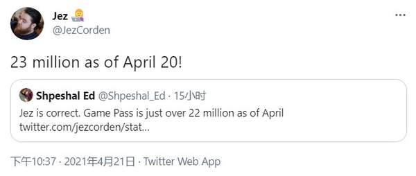 只管在次世代主机争锋中,微软的Xbox Serise X在第一方阵容方面输于索尼的PS5,不外在其他方面索尼可能要瞠乎厥后了,没错说的就是“订阅服务”方面。据Windows Central编辑Jez Corden日前透露,住手2021年4月20日,微软Xbox Game Pass服务在所有支持平台上吸引跨越2300万订阅用户。