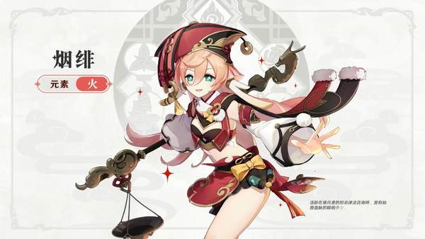 烟绯是一名站场型输出角色,她通过消耗丹火印强化自身,并对敌人造成火焰危险,其元素战技与元素发作能够造成危险的同时还能够进一步提高对丹火印的获取效率。