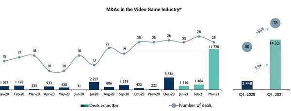 在自然界,弱肉强食,适者生计是铁律,而放到游戏界为了拓展IP、追求突破公司间的兼收并蓄也是常理。克日,游戏产业信息平台InvestGame 提供了一组数据,总结了2021年第一季度全球游戏产业的生意总值,据数据统计已公然的生意有280宗,总价值到达390亿美元。