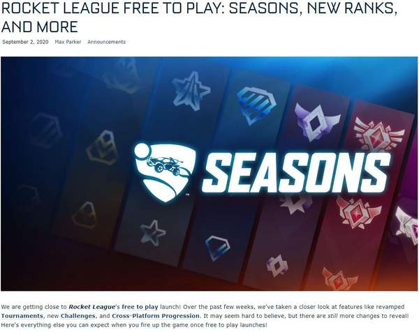 开发商Psyonix宣布,《火箭联盟》将转为全平台免费游戏,并且PS4/Switch平台的玩家进行联机对战时,无需PlayStation/Switch Online会员服务,游戏还将加入跨平台进度同步的功能,所有平台将使用相同的游戏进度。目前《火箭联盟》确切的免费日期官方暂未公布。