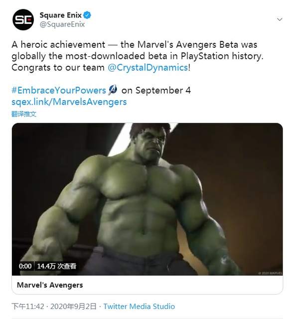 漫威超级英雄电影近几年在全球大热,广大的人数基础也让Square Enix的《漫威复仇者联盟》游戏备受期待。SE官推近日表示,《漫威复仇者联盟》测试版已经成为PS平台历史上下载次数最多的测试版游戏。本作测试在8月份连续进行了三周,并首先为所有预购玩家开放。