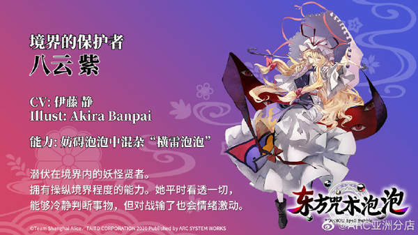 《东方咒术泡泡》是一款可边聆听东方Arrange乐曲游玩的益智节奏游戏,本作的中文盒装实体版将于今年秋天登陆任天堂Switch平台。今日,游戏发行商亚克系统公布了该作的角色介绍第六篇内容。本次官方为玩家们介绍的游戏角色八云 紫以及铃仙·优昙华院·因幡,下面就一起来了解下吧。
