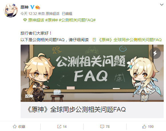 米哈游新作《原神》将于9月28日全平台公测,在此之前游戏将于9月15日开启PC端不删档技术开放性测试。随着PC端开发测试时间将近,@原神官博在今日公布了游戏全球同步公测相关问题FAQ。此外,官方也宣布了PC开放性测试预载时间:9月13日上午10点,并对游戏的PC配置要求进行了更新。