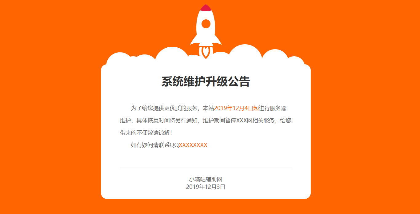 小火箭橙色404网维护源码