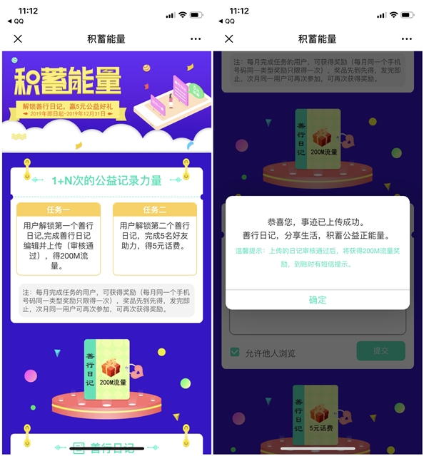 微公益积蓄能量写善行日记_抽领移动200M流量