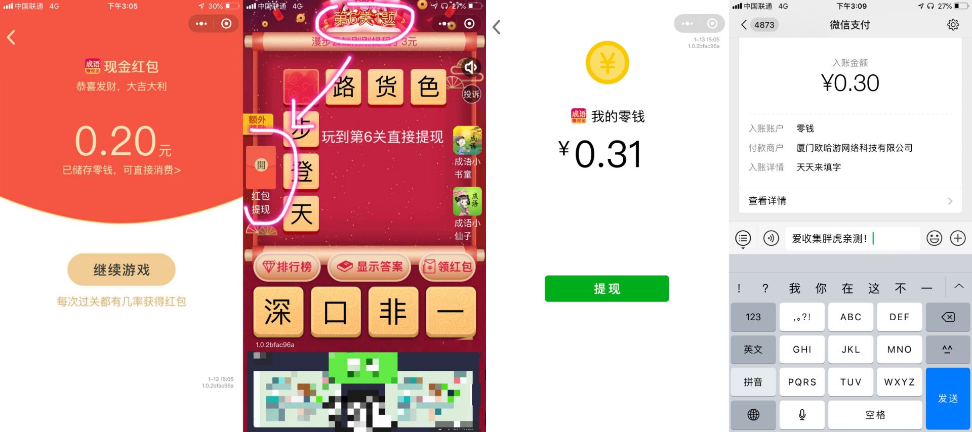 天天填字必领0.30微信红包