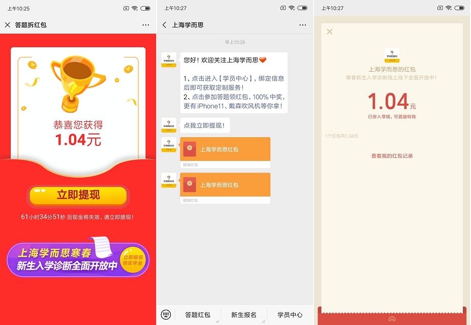 上海学而思答题拆现金红包_亲测两个红包秒到