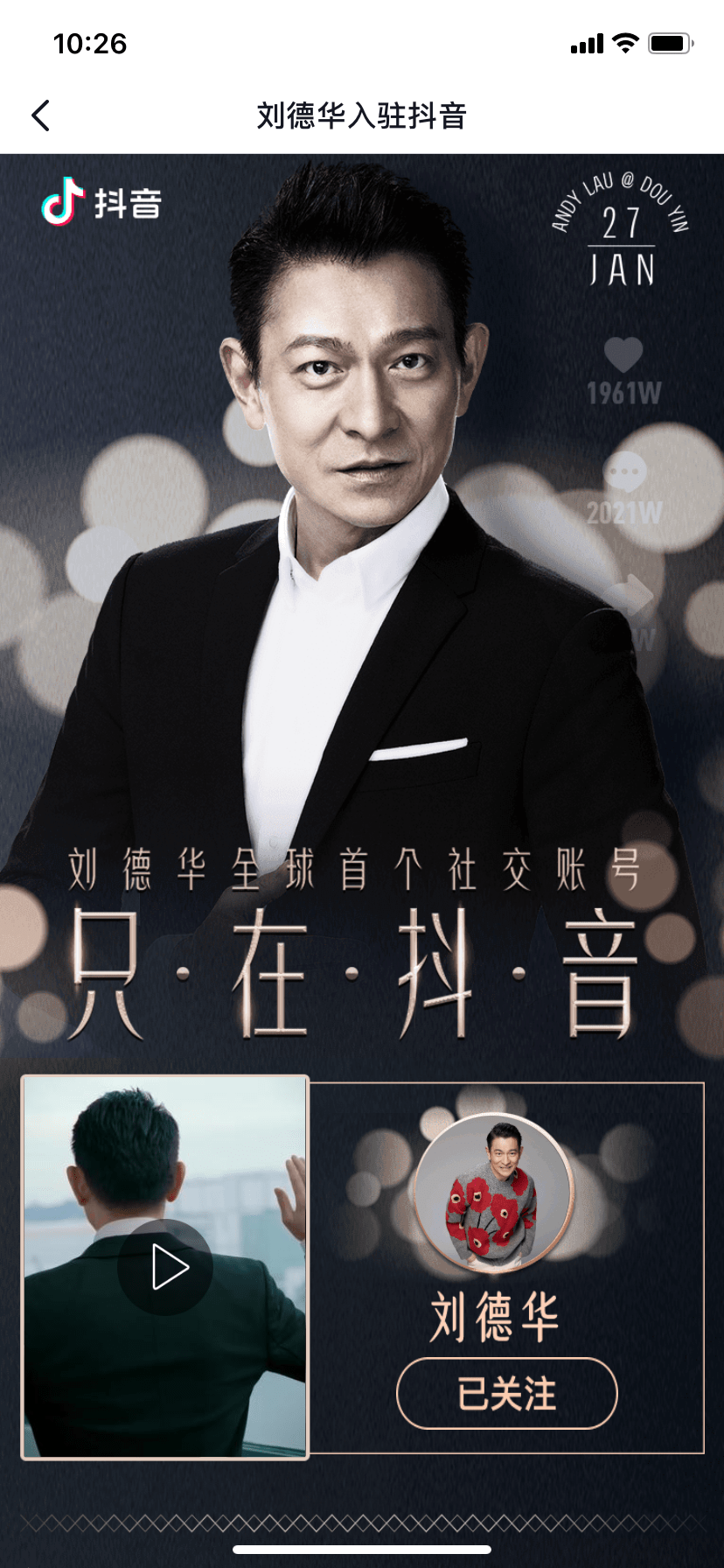 刘德华入驻抖音:系华仔全球首个社交账号