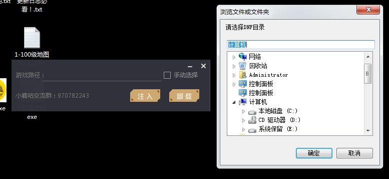 打开辅助注入后上游戏,赛利亚房间自动呼出。