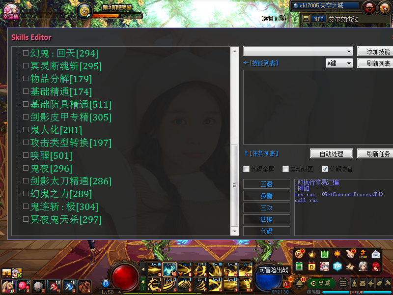 赛利亚房间打开,点刷新列表可以获取自己职业的技能,然后双击出来分类修改冷却时间,技能等级等等。