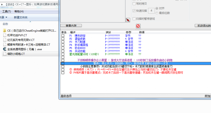 打开过图标工具加载图标后再上游戏,CE就能附加游戏了,打包了多个CT,机甲啊、无限V、塔防秒杀等等