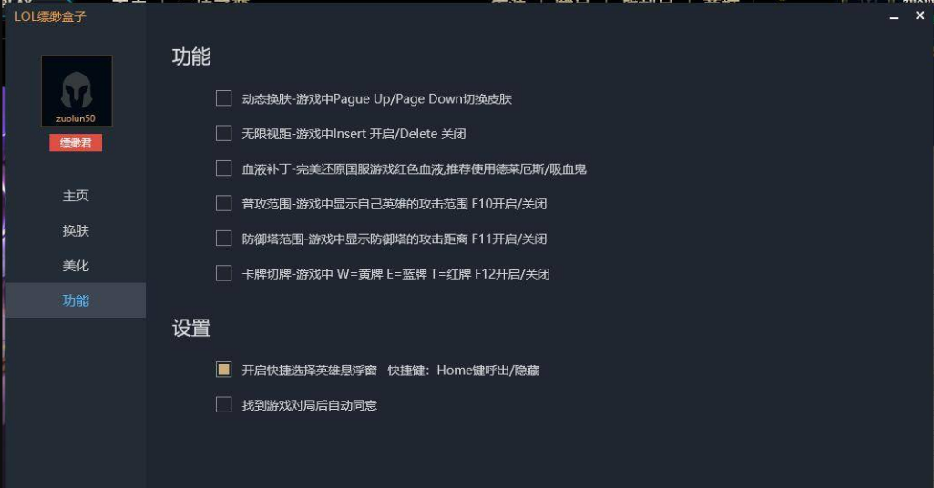 LOL缥缈盒子V11.12换肤视距范围切牌多功能免费版