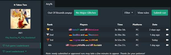《双人成行》是一款互助双人游戏,需要2名玩家通力互助才气顺遂通关。游戏已于3月26日发售,游戏获得了媒体和玩家的一致好评。让人没想到的是这款双人游戏也能速通,最近外洋热衷速通游戏的玩家已经最先挑战速通《双人成行》,现在最佳成就是3小时38分54秒。
