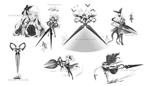 Zeronis_Art透露,异常早期的设计是基于叙事作家Michael Luo的内容偏向举行的艺术创作,关于铰剪英雄的超早期迭代,提线木偶的创意很有趣,带护套的铰剪也不错,且早期看法,是一个可爱的复生僵尸很有意思。