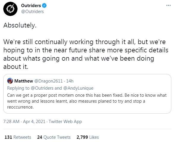 Square Enix科幻互助FPS《先驱者(OUTRIDERS)》首发之途并不顺遂,先是服务器问题严重被迫下架修复,随后又被爆出PC版各种BUG严重,影响体验。开发团队日前示意,他们仍在解决游戏的服务器和卡顿溃逃问题,并在“不久的未来”分享关于发售时泛起云云多失误的‘详细细节’以及开发者团队对其的解救措施。