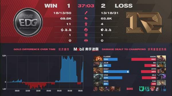 36分钟维克托再次施展神勇,卡牌绕后无法拯救战局,EDG完成2换5后一波竣事竞赛,扳回一局!