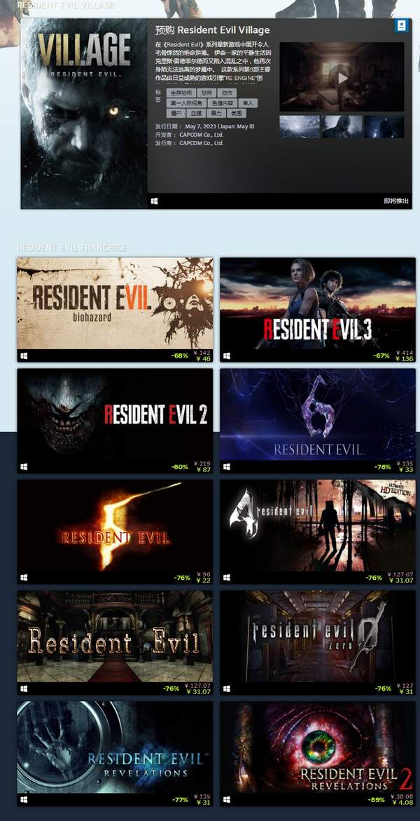 不少游戏好价持平史低,《生化危急3RE》136元、《生化危急2RE》87元、《生化危急7》46元、《街霸5》44元、《鬼泣5》109元…